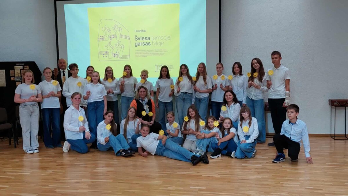 Spalio 8 dieną gausus būrys mūsų mokyklos mokinių kartu su mokytojais Dalia Kerevičiene, Edmantu Rėkumi, Regina Mačiulskiene dalyvavo projekto „Šviesa tamsoje, garsas tyloje“, kuris skirtas P. Daunio 125-osioms gimimo metinėms, baigiamajame renginyje, vykusiame Marijampolės Petro Kriaučiūno viešojoje bibliotekoje. Visas projektas buvo nepaprasta ir įkvepianti patirtis - pilna kūrybos, jausmų ir bendrystės. Mokiniai mokėsi ir gestų kalbos, kurią baigiamajame koncerte perteikė dainuodami dainą „O mes vaikai“ - tai leido dar giliau pajusti muzikos galią, kai žodžiai tyliai užleidžia vietą judesiui ir jausmui. Didžiuojamės savo mokiniais ir mokytojais, kurie su meile ir atsidavimu kuria, įkvepia ir dalyvauja įvairiuose iššūkių kupinuose projektuose!